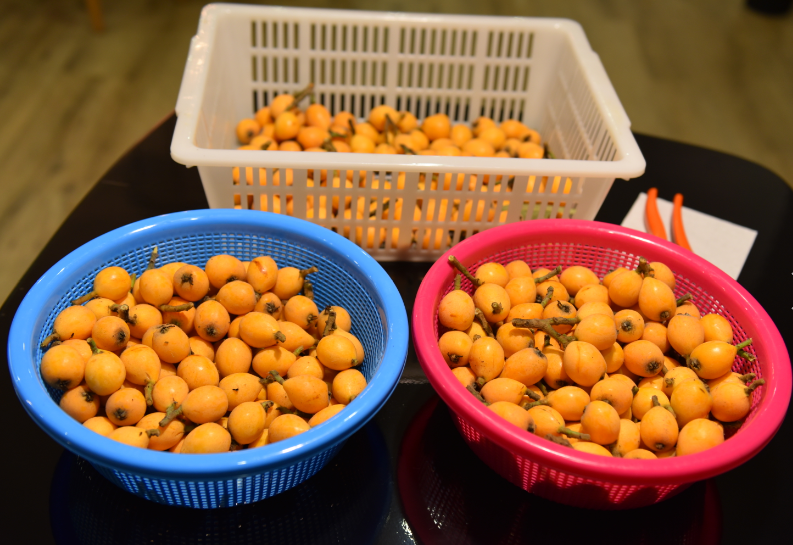 公司董事长百忙之中亲自执行了第一次采摘使命。。。。。丰收的喜悦,,,,,,,,虽然要各人一起分享,,,,,,,,采摘后的枇杷果实由行政部送到了公司食堂,,,,,,,,作为各人的饭后水果。。。。。果实个头虽小,,,,,,,,但支付了汗水获得的果实味道却极好。。。。。